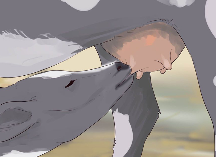 Doğumdan sonra inek yavrusunu yalayarak hem yavrunun kurumasına hem de dolaşımın hızlanmasına yardımcı olur. Eğer inek herhangi bir nedenle bu işi yapmıyor ise buzağının üzerine hafif tuz serpilerek yalaması teşvik edilmeli veya kuru bir bez veya yataklık sapla; buzağı iyice silinerek, kurutulmaya çalışılmalıdır.
